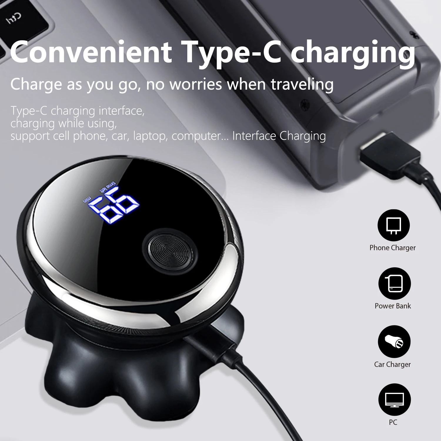 Geared with a powerful integrated lithium-ion battery (900 mAh) and Type-C interface, GENKO electric head shaver allows 60 minutes of cordless use to shave anywhere and anytime, outlasting other models.