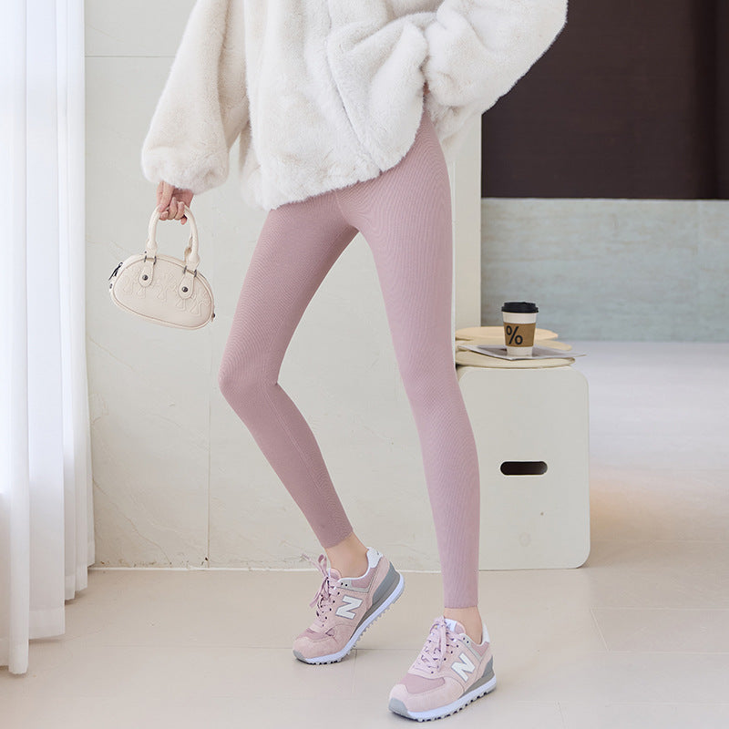 Pure Cotton Fleece-lined Thick Autumn And Winter Threaded Leggings