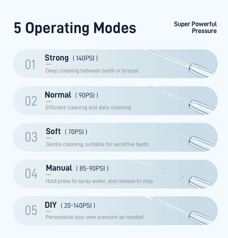 - 5 Working Modes: Strong, Normal, Soft, Manual, DIY – customize your cleaning experience.