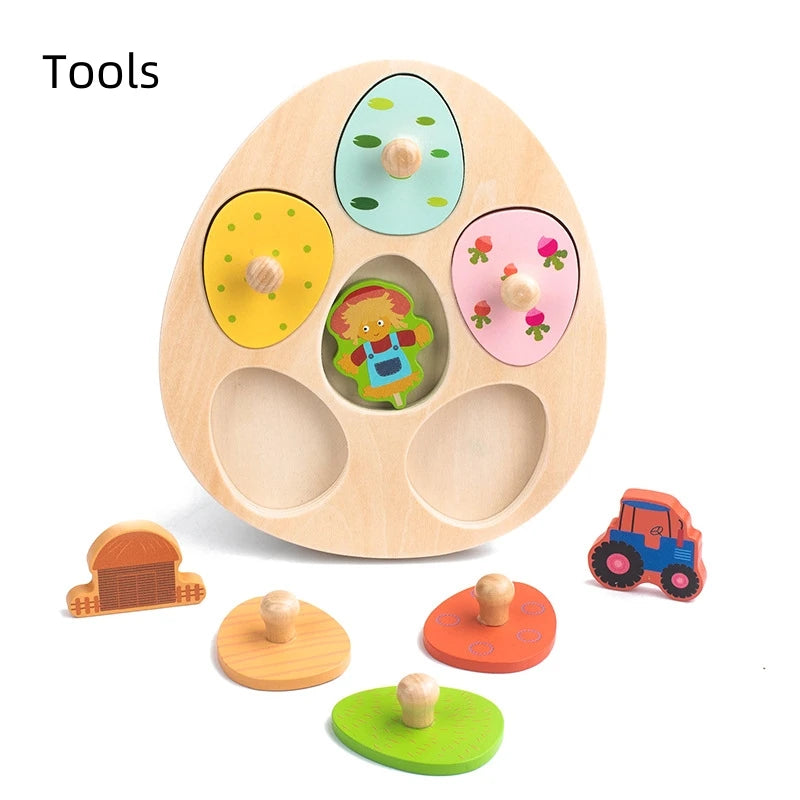 🐻【 Matching Eggs Toys】Our cute wooden matching puzzle set includes flower、tools or insect under each egg with different color and patterns on it. It will provide hours of entertainment for your little one. The easy-grasp wooden knobs are also easier for toddler to play. These puzzles are also durable enough to play everywhere you want - an excellent hand-eye coordination and preschool learning challenge for your child!